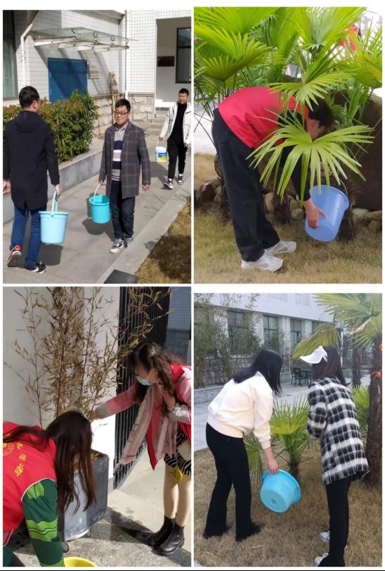 3月8日下午,太阳成tyc7111cc集团青年志愿者协会的同学来到太阳成tyc7111cc集团东教楼,在太阳成tyc7111cc集团党总支书记刘芳、副书记冷靖、团总支书记谢晨、学工办主任黎骊及党员老师们的带领下开展了此次活动。志愿者们带上自己的劳动工具,有的接水,有的浇树、有的浇花,忙得不亦乐乎。大家团结协作,井然有序,为建设绿色校园奉献着自己的力量。