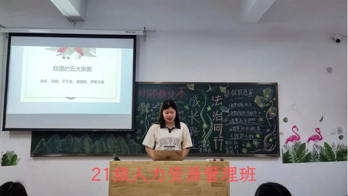 4月16日,我院组织各班开展学法懂法抵制邪教主题班会,并在班会结束后,组织学生观看反邪教教育片,同时也开展了对“邪教说不”的网上签名活动。各班都能有序进行,并且针对反邪教的各个方面展开了讨论和学习。
