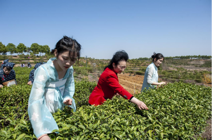 仪式启动后,企业负责人带领实践团成员一路向上遍赏茶园风光,从高高的山顶向下望去,整个茶园仿佛就像一个聚宝盆,一排排整齐的茶树从山底盘旋而上,像一个个绿色的堡垒。电商直播专业的同学们借着优美的春光在茶山上随即开启了直播试练,用自己的专业向广大网友推介美丽的茶山,清冽的春茶。