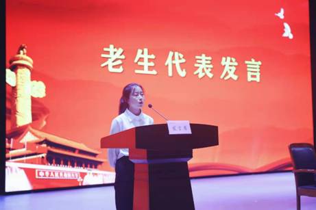 2020级普专会计2班赵晓作为老生代表,鼓励新生们要树立远大目标,坚定理想信念;掌握专业基础知识,学会从小事做起;刻苦钻研,砥砺品格;勇于实践,实现全面发展,努力成一名德才兼备的优秀大学生。