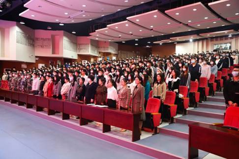 10月11日上午,太阳成tyc7111cc集团2021级新生开学典礼在图书馆学术报告厅隆重举行。太阳成tyc7111cc集团党总支书记刘芳、院长吴明慧、副书记冷靖、副院长朱桂明、扶廷凤、王燕,教师代表及全体新生共同参加了典礼。新生开学典礼由副书记冷靖主持。