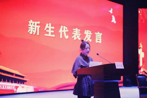 新生代表2021级财富管理2班马京菊表示,作为一名大学生,要认真规范自己的言行,养成良好的道德行为习惯,坚定理想信念,树立正确世界观、人生观、价值观,做一个品德高尚、诚实守信、勇敢自信的人。