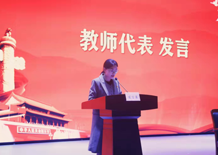 电子商务教研室主任张茜代表全体教师发言。她表示老师们早已做好准备迎接新同学的到来,全体教师愿竭尽所能,全力以赴与同学们的共成长、共进步,同时也希望同学们能尽快适应新环境,自信、自立、自强。