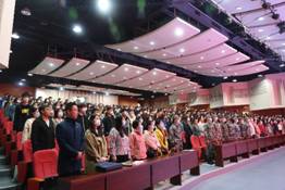 典礼伊始,会场全体人员起立并奏唱国歌,铿锵有力、庄严肃穆、包含深情的旋律为开学典礼拉开了序幕。