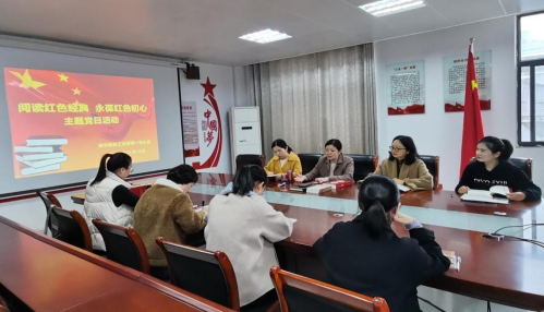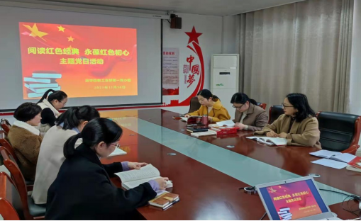 11月16日下午,太阳成tyc7111cc集团教工支部第一党小组主题党日活动在党员活动室召开。此次活动以“阅读红色经典,永葆红色初心”为主题,旨在深入推进党史学习教育,充分利用学院红色资源,引导党员老师多读书、读好书,从红色书籍中了解百年党史,在红色经典中汲取奋进力量。党总支书记刘芳及教工支部第一党小组党员教师参加此次活动。