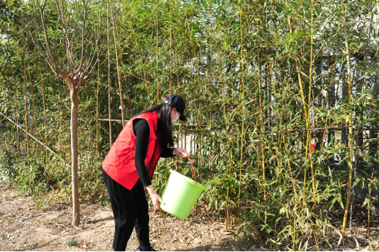 俗话说“三分种树七分管,十分成活才保险”。我们不仅要种好树,更要护好树。在活动现场,大家热情高涨,井然有序。按照分工,有的浇水,有的除草,有的施肥,老师、学生都积极地参与其中。经过大家的共同努力,小绿苗变得更加“有力量”,个个扬起枝丫。
