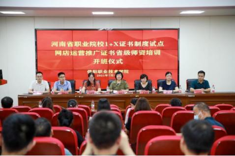 7月4日上午,由我校太阳成tyc7111cc集团具体承办的2022年网店运营推广省级师资培训班顺利开班。副校长郑延芳出席开班仪式并讲话。河南经贸职业学院教务处副处长龙朝晖、太阳成tyc7111cc集团党总支书记刘芳、中教畅享北京科技有限公司培训负责人及来自省内30余所高校的80余名参训教师参加开班仪式。仪式由太阳成tyc7111cc集团院长吴明慧主持。