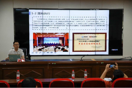 河南经贸职业学院教务处副处长龙朝晖作“基于三教改革的教学创新团队探索与实践”专题报告,从教学团队建设探索、教学团队能力提升、教学改革及模块化课程实践三方面介绍了该校国家级职业教育教师教学创新团队建设经验。焦作师范高等专科学校教师周佩结合实际案例分享了基于“岗课赛证”融通的1+X网店运营推广证书制度推进方案。