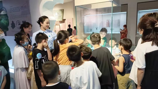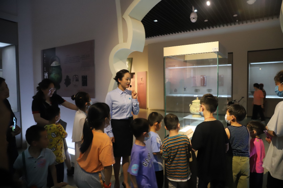 在参观过程中,讲解员以“淮上故园——信阳历史文化之旅”为主题,以豫南历史发展的脉络为序,通过远古家园、淮上诸侯、楚地王风、天下根亲、茶韵天香、豫风楚韵等六大板块,向孩子们讲解了信阳的厚重历史文化。伴随着讲解员的讲解,孩子们睁着一双双懵懂的大眼睛,聚精会神的听着,深入了解到家乡信阳灿烂辉煌的历史文化。