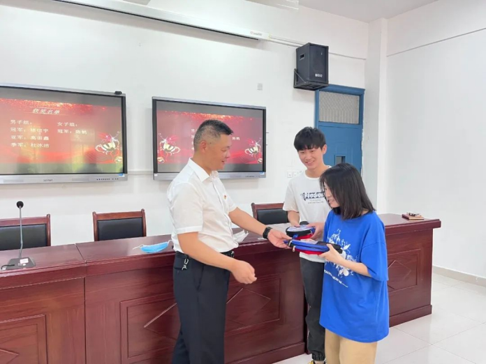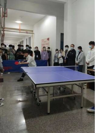 比赛结束后,刘书记和冠军选手同台竞技,随后发表讲话,勉励同学们在封校期间,增强体育锻炼,打造好“第二课堂”,劳逸结合,做德智体美劳全面发展的新时代学生。