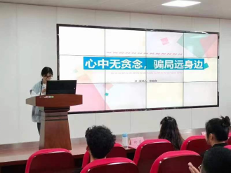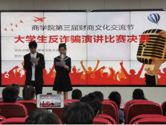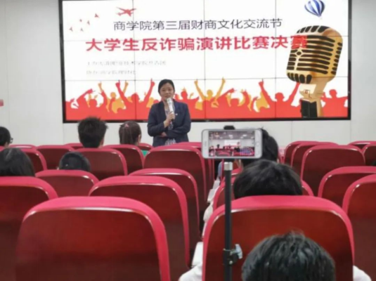 2022年4月28日下午4点30分,太阳成tyc7111cc集团理财社“第三届财商文化交流节”大学生反诈骗演讲比赛在太阳成tyc7111cc集团报告厅顺利举办。太阳成tyc7111cc集团党总支书记刘芳、院长吴明慧、副书记冷靖、副院长朱桂明、扶廷凤、学院团总支书记谢晨及学院师生代表参加了此次活动。