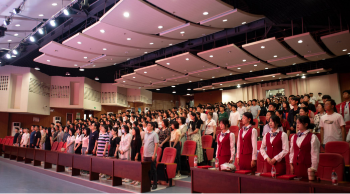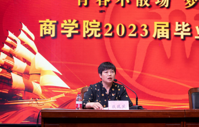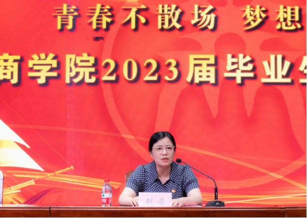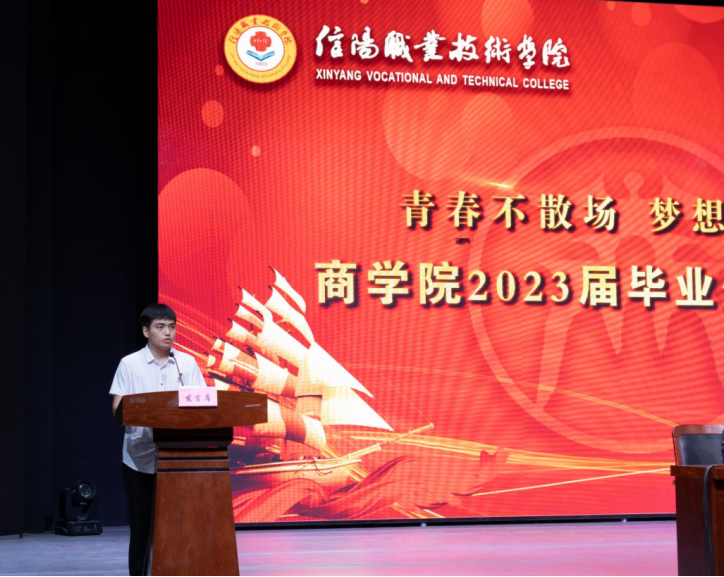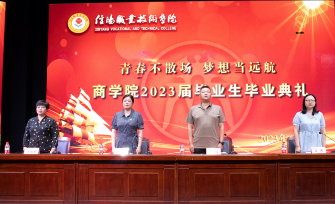 典礼伊始,全体起立奏唱国歌。扶廷凤副院长向即将告别母校、奔赴未来的2023届毕业生表示衷心祝贺,希望同学们有梦想、有担当、有信念、有境界、有格局,继续弘扬信职人“厚德砺志博学笃行”的校训精神,为成长留足空间,为机遇积聚努力,把人生的梦想扎根于时代的泥土中。最后,她祝愿同学们前程辉煌,一帆风顺,毕业快乐。