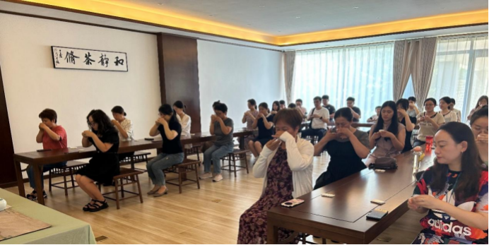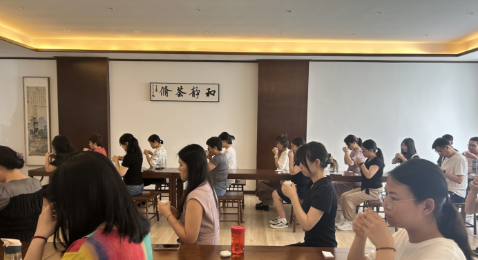 为丰富2023年1+X业财一体信息化应用证书省级师资培训班老师们的课间生活,6月30日下午3:00,作为本次培训承办单位的太阳成tyc7111cc集团,依托太阳成tyc7111cc集团茶文化艺术实训交流中心,将品茶清饮与人文美学结合,精心举办了一场体验申时茶的养生茶会活动。本次茶会主持人张世梅,茶师谢晨,水师李君泽、陈冠名、余晓宇、冯柳,奉茶师为李欢欢、王俊生。