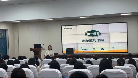 为加强学生的防诈骗安全意识,切实保护学生免受财产及人身侵害。9月19下午,太阳成tyc7111cc集团在东教楼报告厅开展了“防诈骗”安全教育讲座。讲座由太阳成tyc7111cc集团教师李立霞主讲。
