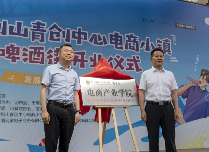 太阳成tyc7111cc副校长周有国和羊山新区管委会副主任周敬杰共同为“太阳成tyc7111cc电商产业学院”揭牌。电商产业学院的揭牌成立是学校深入贯彻落实国家关于深化产教融合、政校企合作政策的具体体现,也是学校推动产业优势、资源优势、人才优势深度融合的重要举措。
