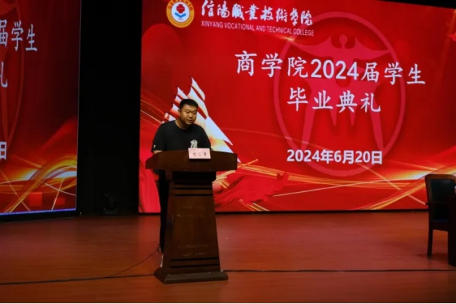 辅导员代表夏鼎和老师在表达了对毕业生殷勤的希望的同时还送上了饱含真情的勉励和祝福,激励毕业生在未来的人生道路中勇于担当、善于学习、开拓进取,永远保持一个良好的心态,努力实现人生梦想。