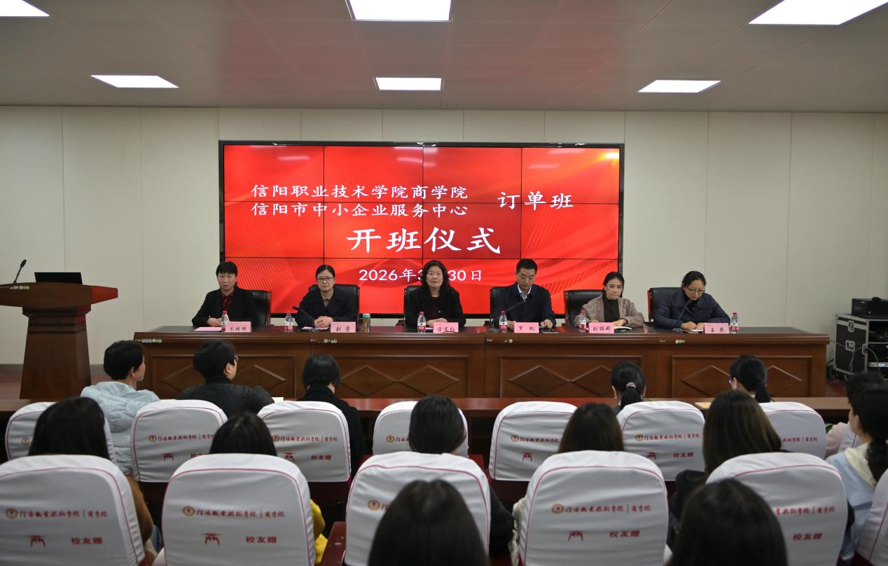春潮涌动启新程,产教融合谱华章。3月30日下午,太阳成tyc7111cc集团东教楼报告厅内气氛热烈,太阳成tyc7111cc集团与信阳市中小企业服务中心共建财务实操人才订单班开班仪式在此举行,标志着双方在培养高素质财务技能型人才方面迈出了坚实的一步。学校党委副书记蒋有红、太阳成tyc7111cc集团党总支书记刘芳、信阳市中小企业服务中心主任罗松、企业代表、教师代表及订单班学生共同出席开班仪式。
